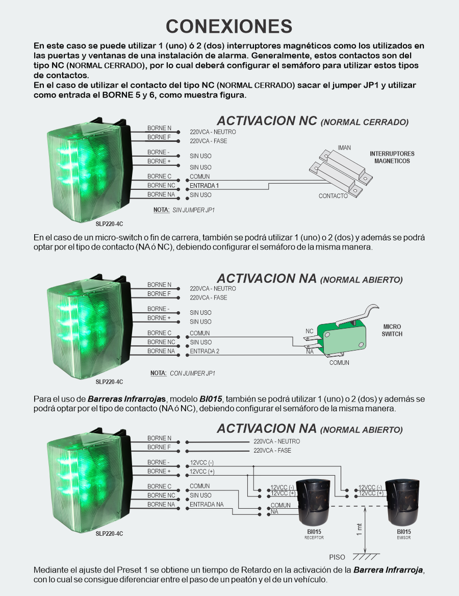 * Selección del tipo de contacto utilizado en la entrada: NA (Normal Abierto) o NC (Normal Cerrado).