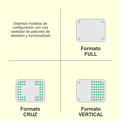 Tambien se puede dividir en dos sectores verticales, los cuales pueden secuenciar en forma alternativa entre si, con la posibilidad de utilizar dos colores de LED