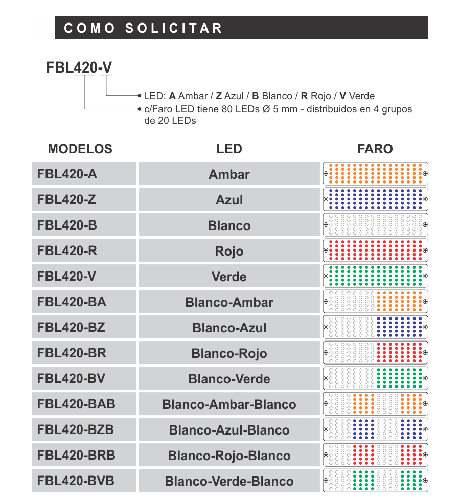 *Colores disponibles Ámbar, Azul, Blanco, Rojo, Verde y combinaciones personalizadas